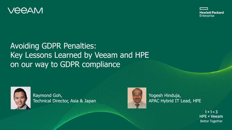 Session to all APJ customers and partners on the topic - Avoiding GDPR Penalties: Key Lessons by Veeam and HPE on our way to GDPR compliance